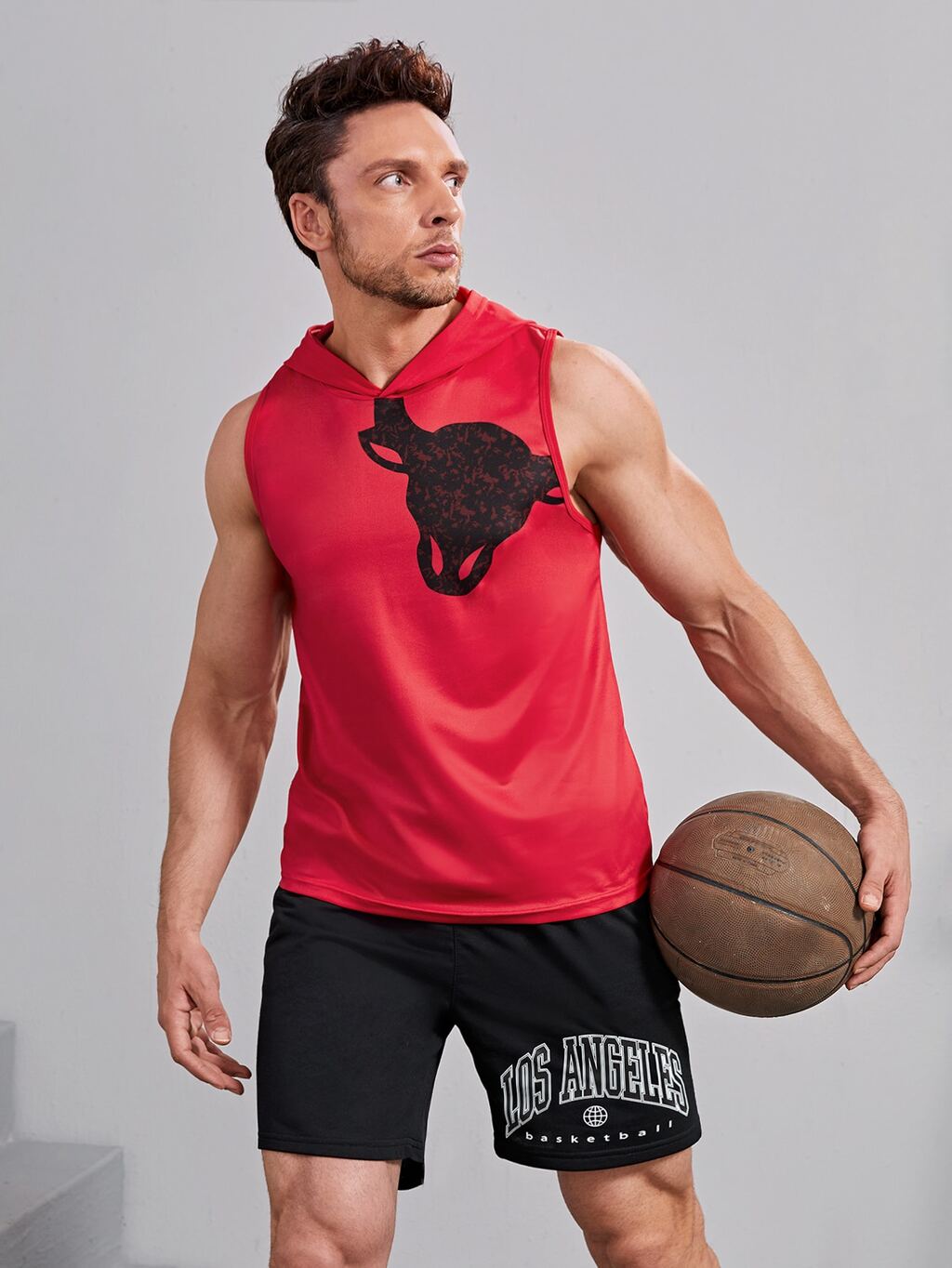 Canotta sportiva con grafica e cappuccio, stile boyfriend per uomo