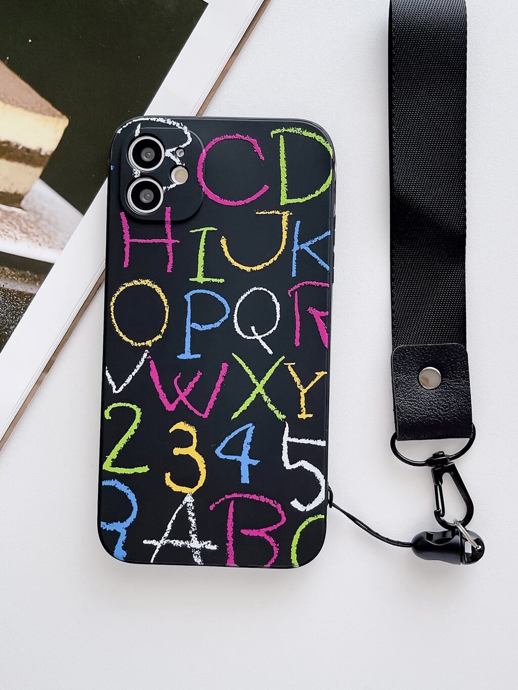 Custodia per telefono con grafica a lettere e cordino, versione internazionale, non la versione domestica