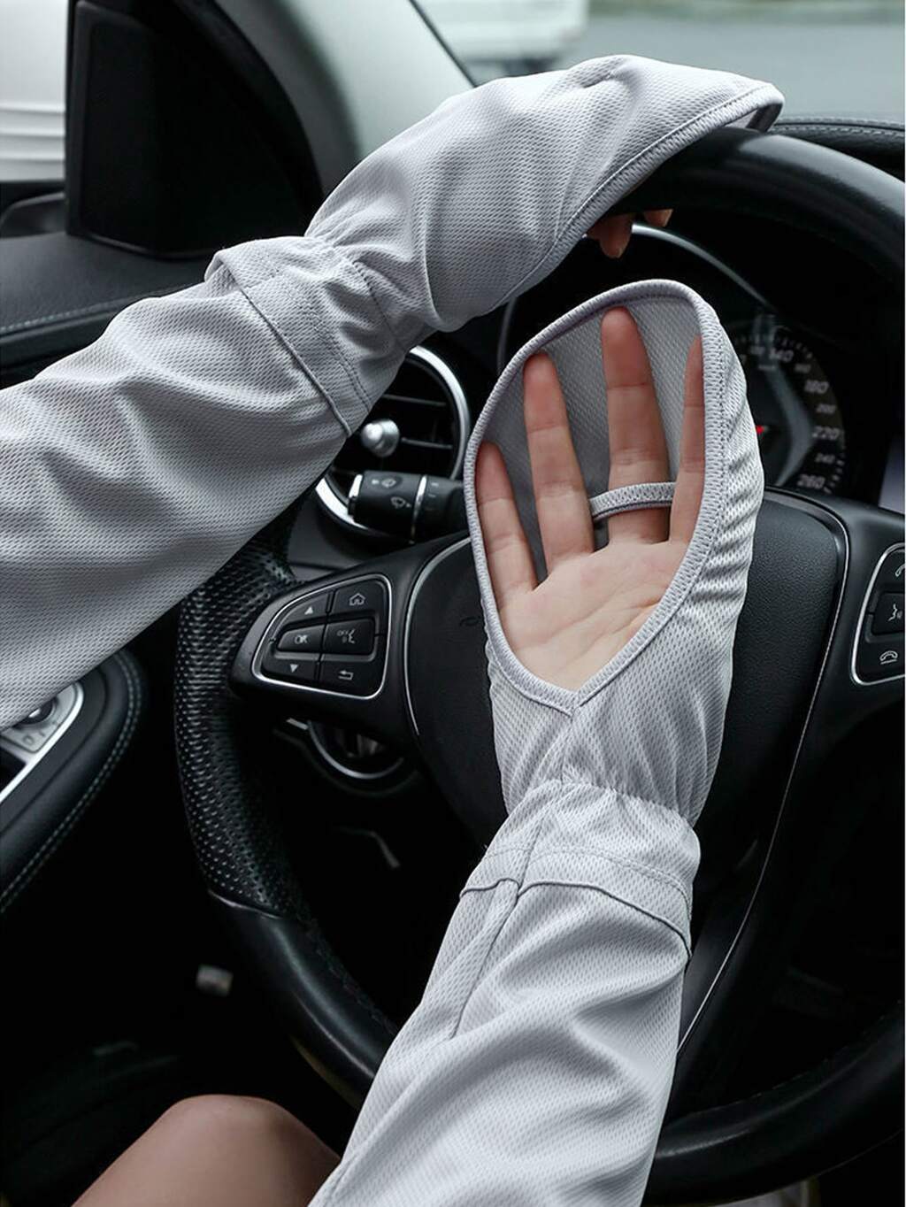 1 paio Manicotto per l'estate con protezione solare anti-UV, leggero, con copertura per le dita, bracciale traspirante, anti-UV ed elegante, adatto a uomini e donne, ideale per il ciclismo e la guida della motocicletta