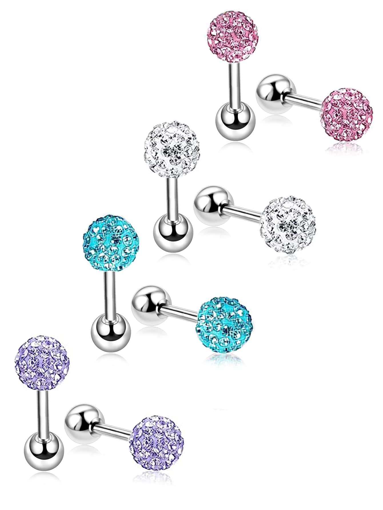 4 paia/set in acciaio inossidabile vite Fissazione orecchio indietro orecchio Orecchini a bottone con con strass per donne , multicolore