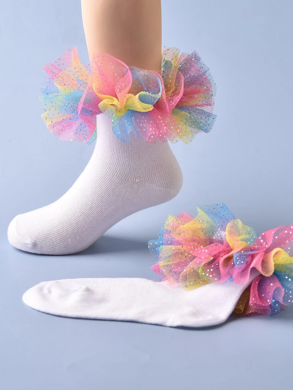 소녀용 백색 편안하고 부드러운 통기성 좋은 귀여운 패션 젤리 스타일 양말 1 켤레. 댄스, 레저, 휴가, 생일 파티, 학교 및 일상적인 사용에 적합합니다.