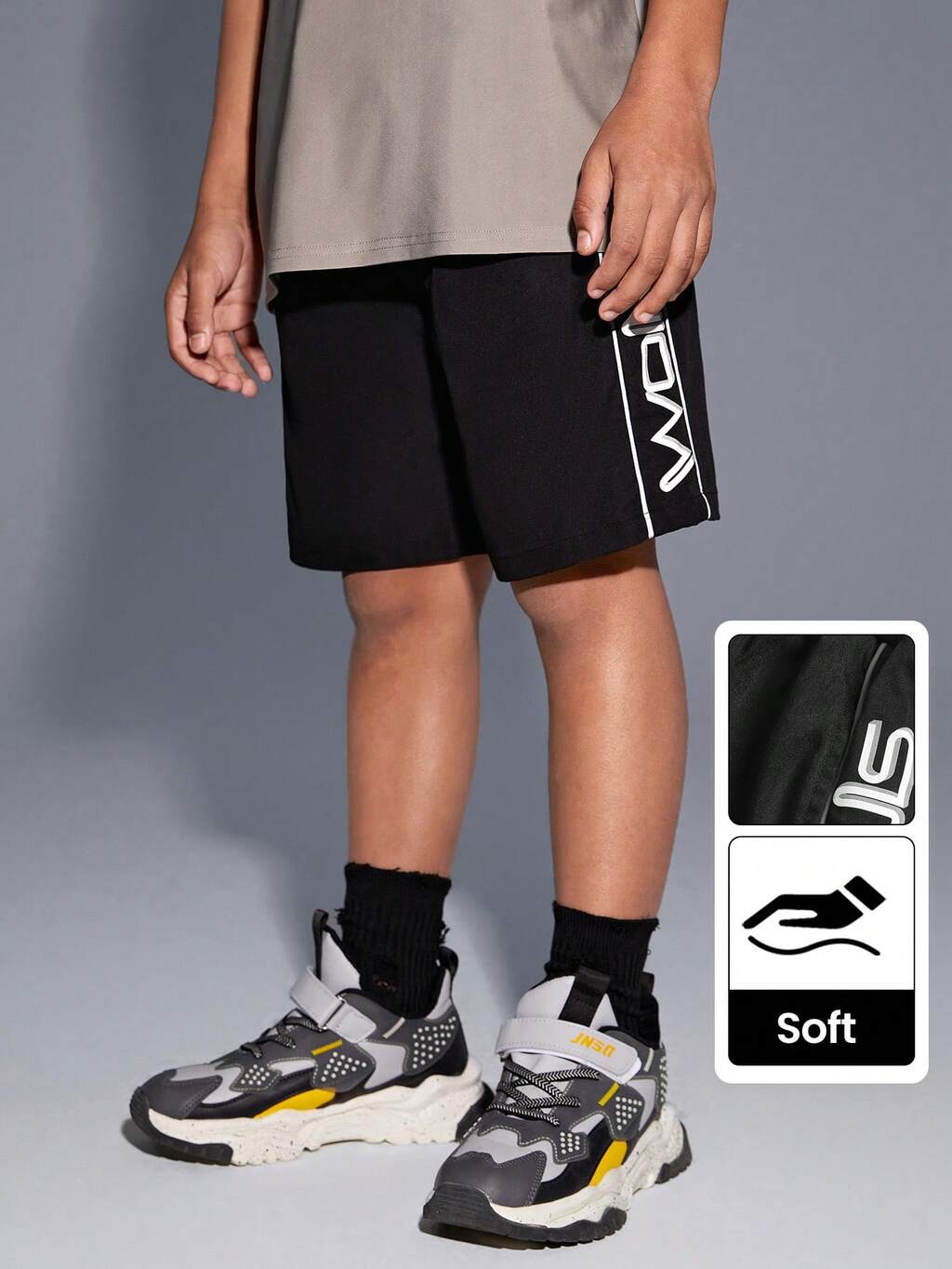 레터 프린트가 있는 트윈 보이 우븐 컬러 블로킹 반사 드로스트링 숏팬츠