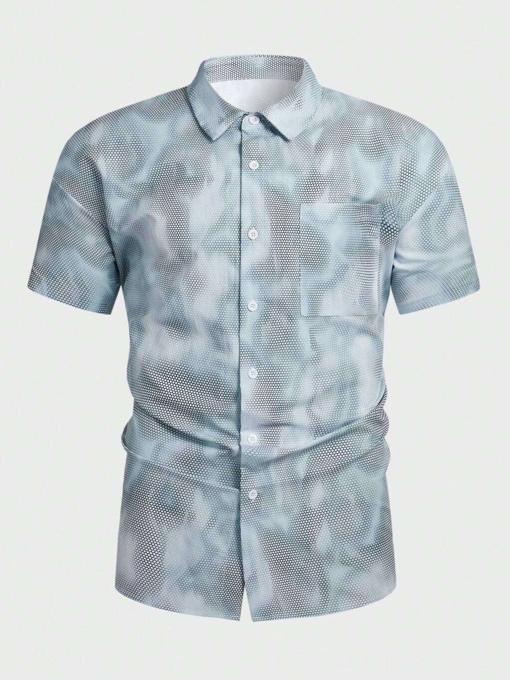 양털소년용 캐주얼 스트리트 그라데이션 타이 다이 및 프린트 반팔 오픈 스티치 루즈 셔츠