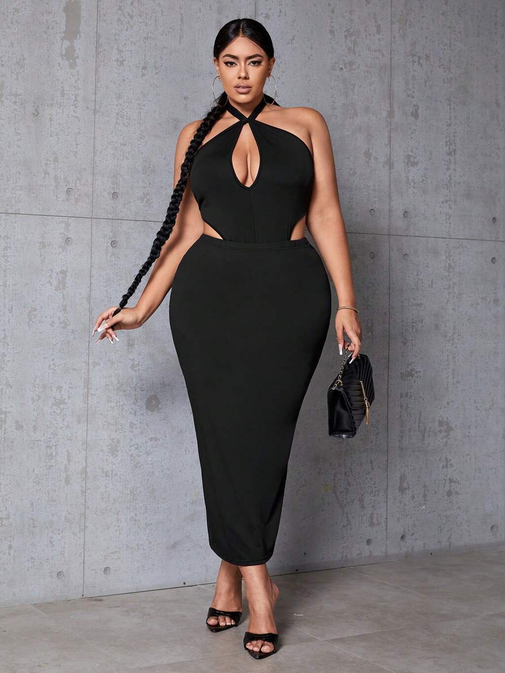 Plus Size Women's Sexy Knitted Hollow Out Mid-length Sweater Dress