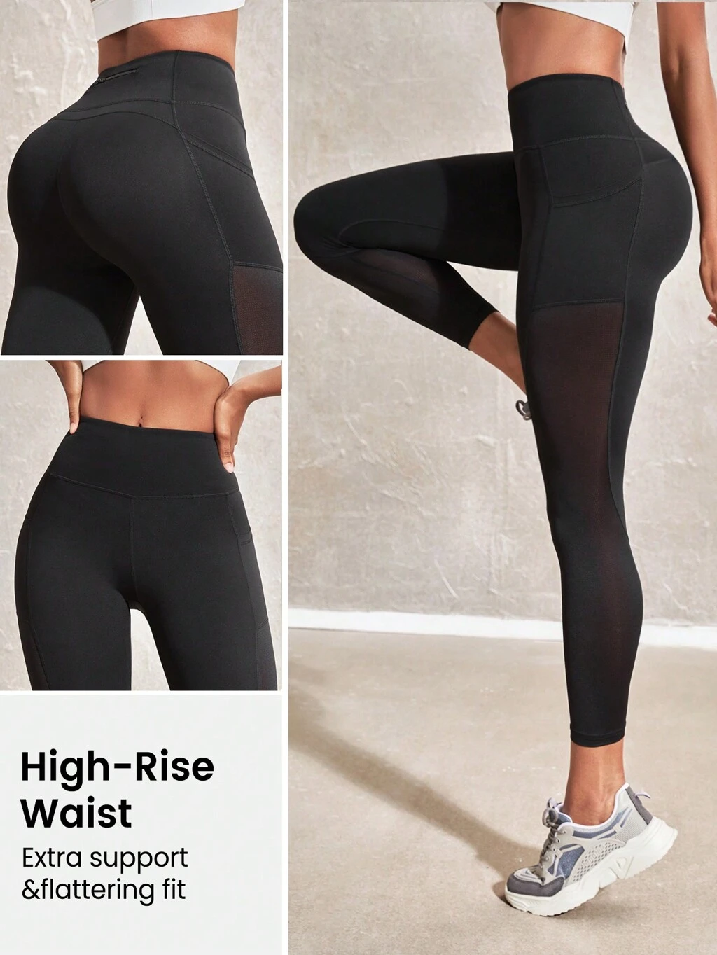 Mesh Insert Contrast Side Seam Wideband Waist Sports Leggings Yoga Women Pants