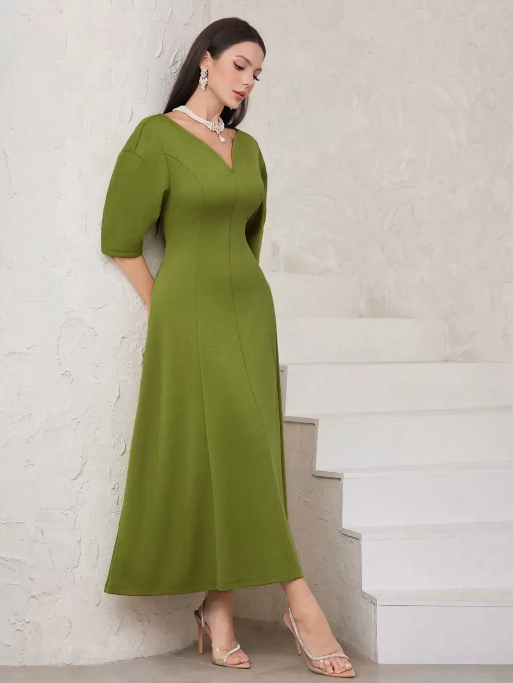 Women's Solid Color V-Neck Short Sleeve Split Hem Dress