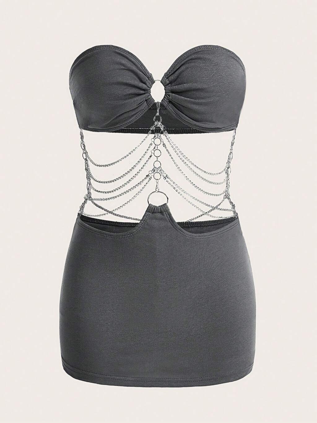 Hollow Out Chain Strap Bandeau Bodycon Mini Dress