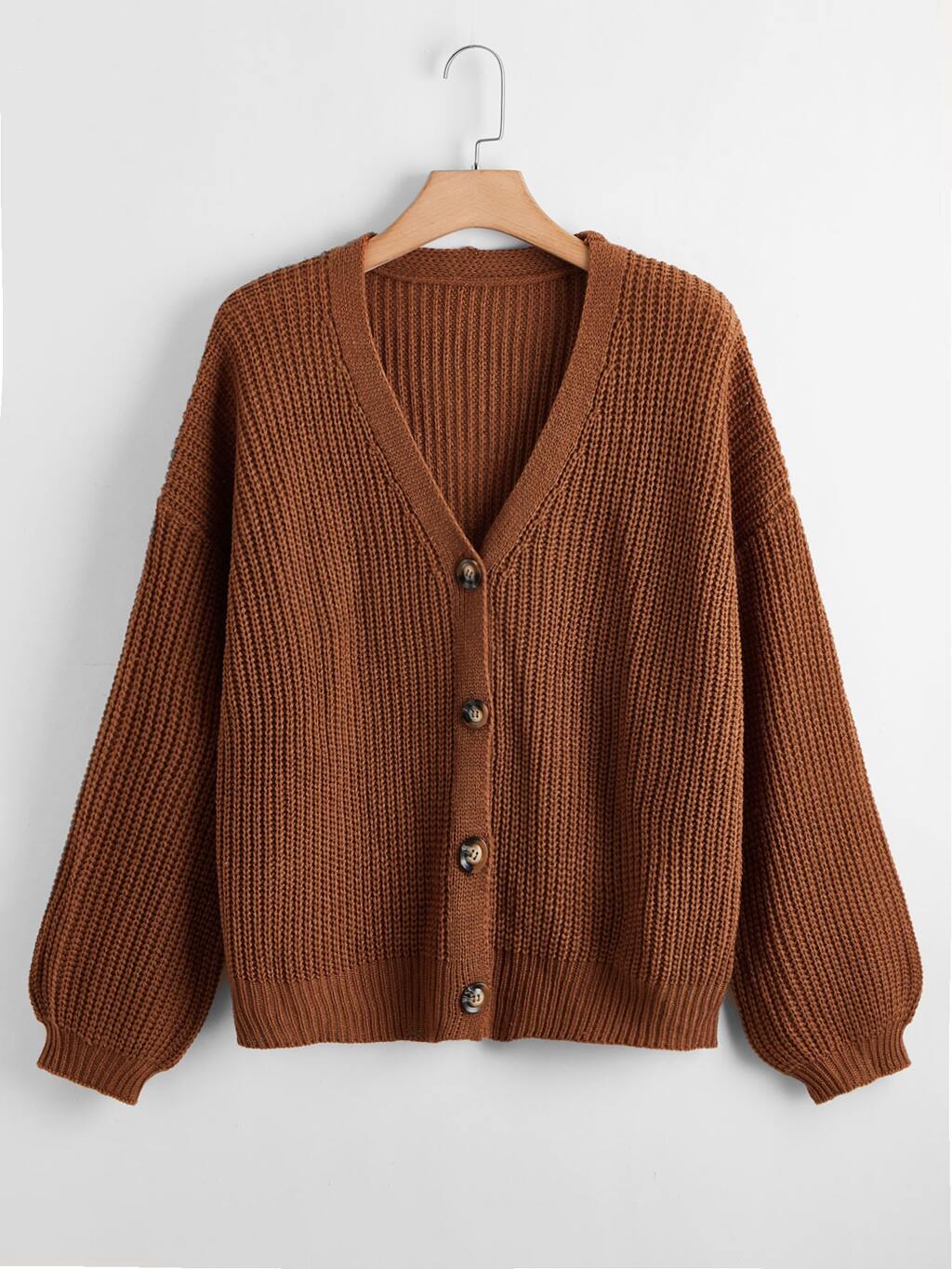 Plus Button Up Drop Shoulder Cardigan, For Winter Fall Cloth For Women Autumn