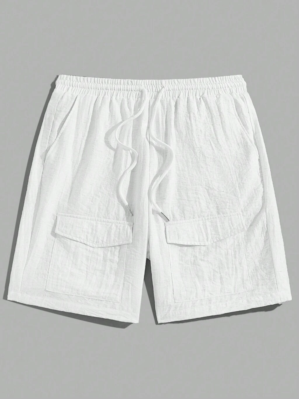 Men Solid Color Pleated Weave Casual Shorts For Daily Wear