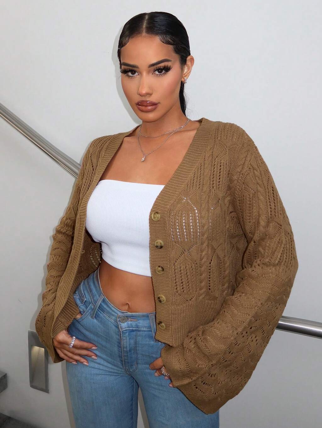 Cable Knit Button Front Cardigan