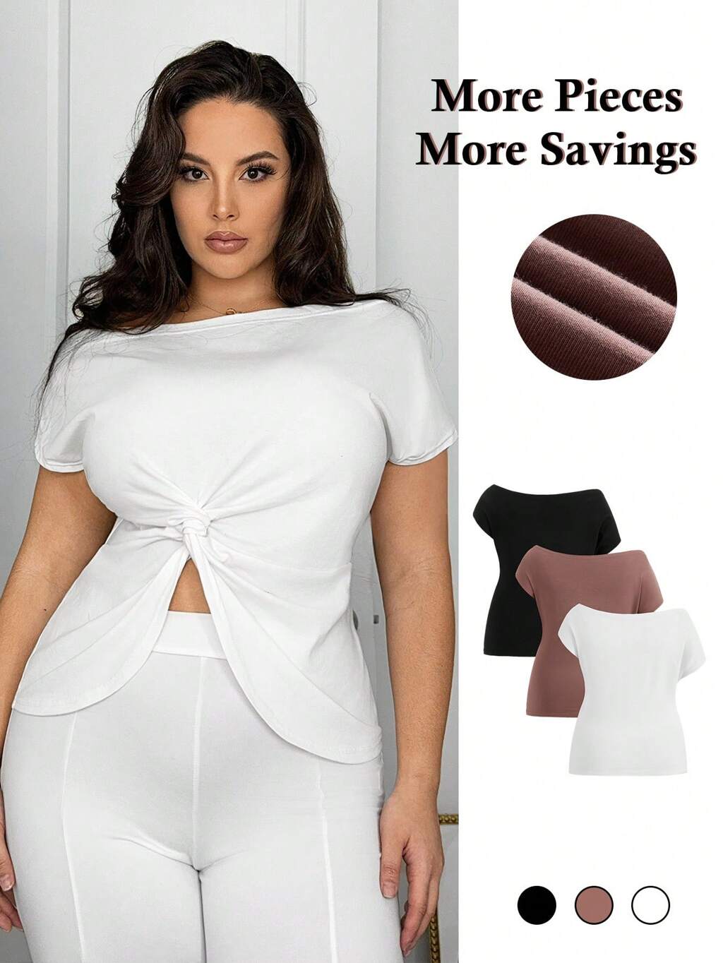 Plus Size Women's 3pcs/Set Twist Knot Hem T-Shirt Combination Set