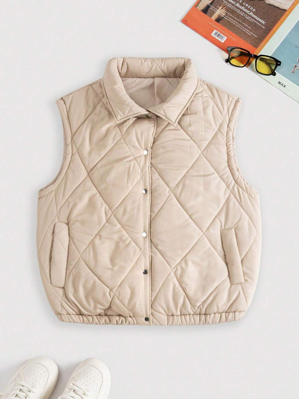 Plus Size Women's Press Stud Closure Padded Vest