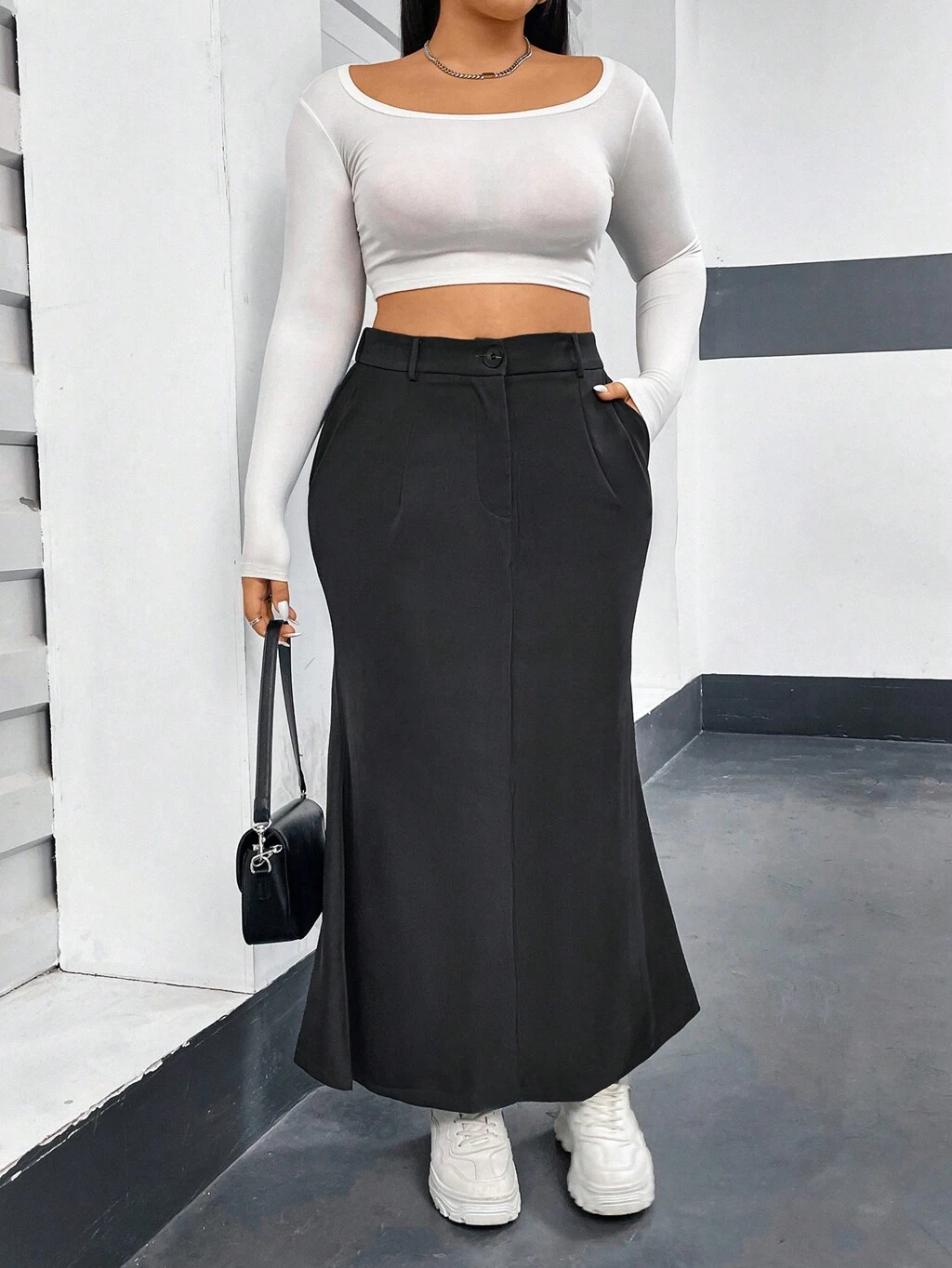 Plus Size Skirt With Slanted Pockets And Fishtail Hem