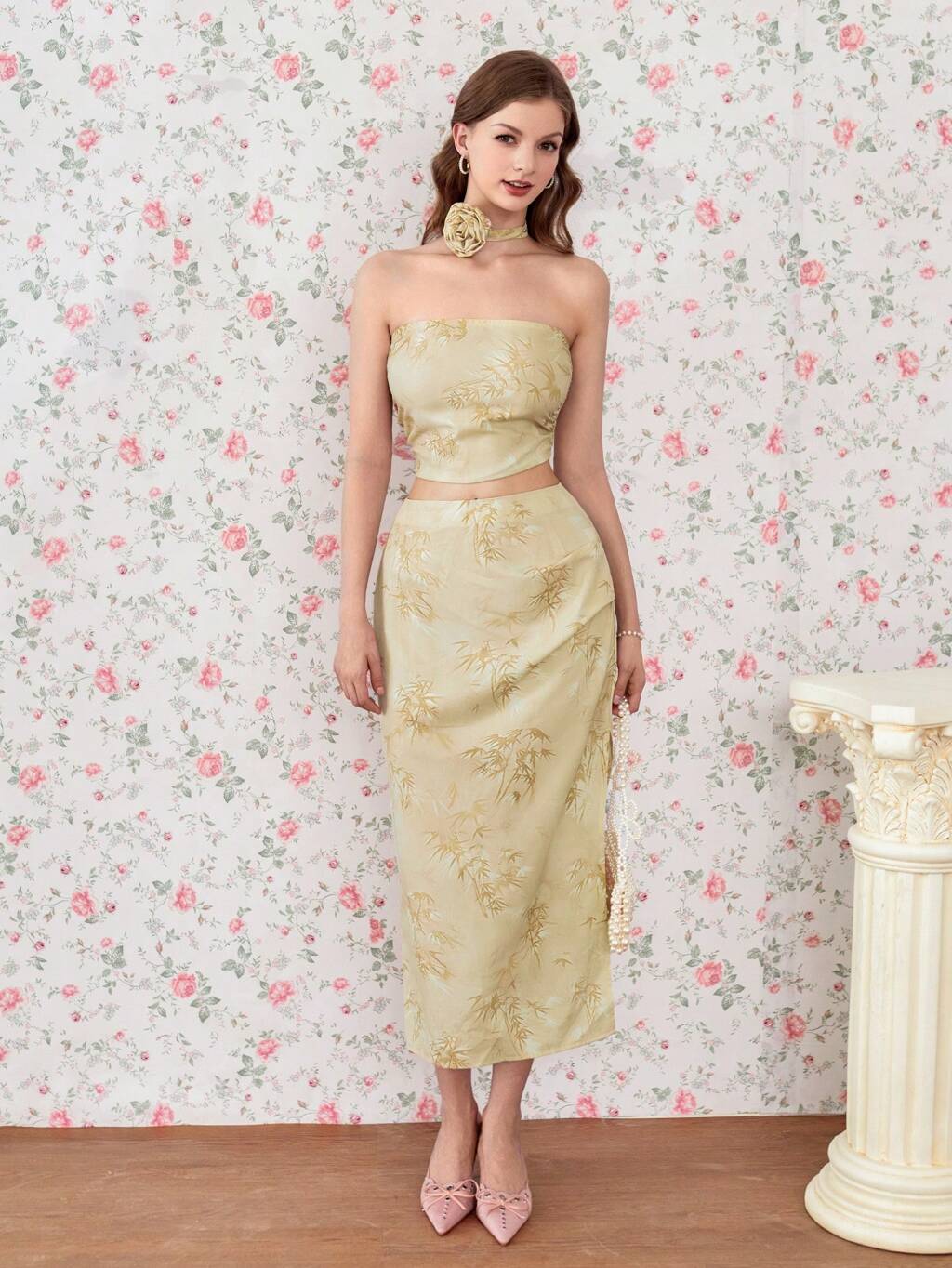 Women's Elegant Sleeveless Top With Single-Breasted Square Neckline And Long Skirt Set For Summer
