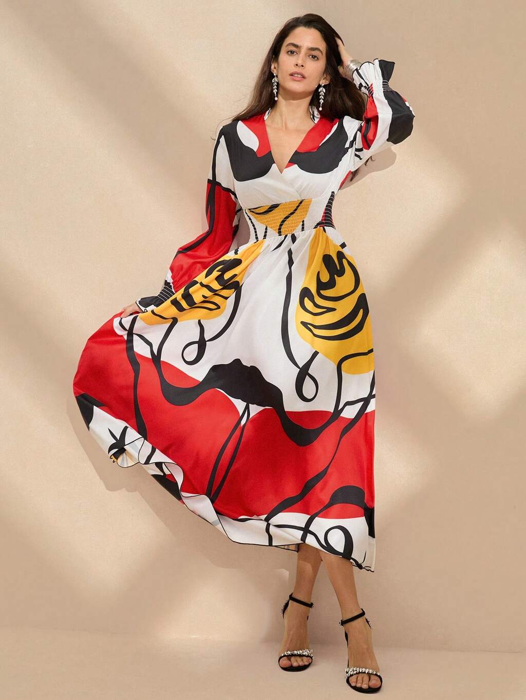Abstract Printed V-Neck Long Summer Vacation Dress
