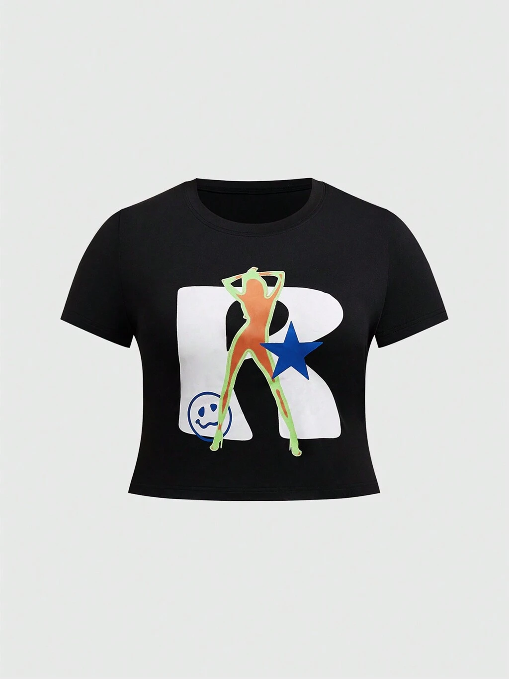 Plus Size Men's Letter Car & Flag & Checkerboard Pattern Short Sleeve T-Shirt