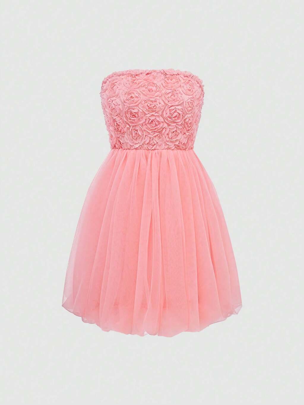 Women's Solid Color Strapless 3D Floral Mesh Evening Party Dress