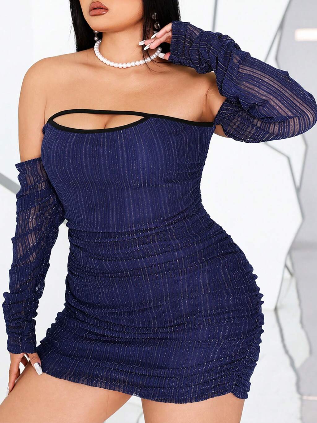 Plus Size Off Shoulder Ruched Bodycon Dress Fall Cloth For Women