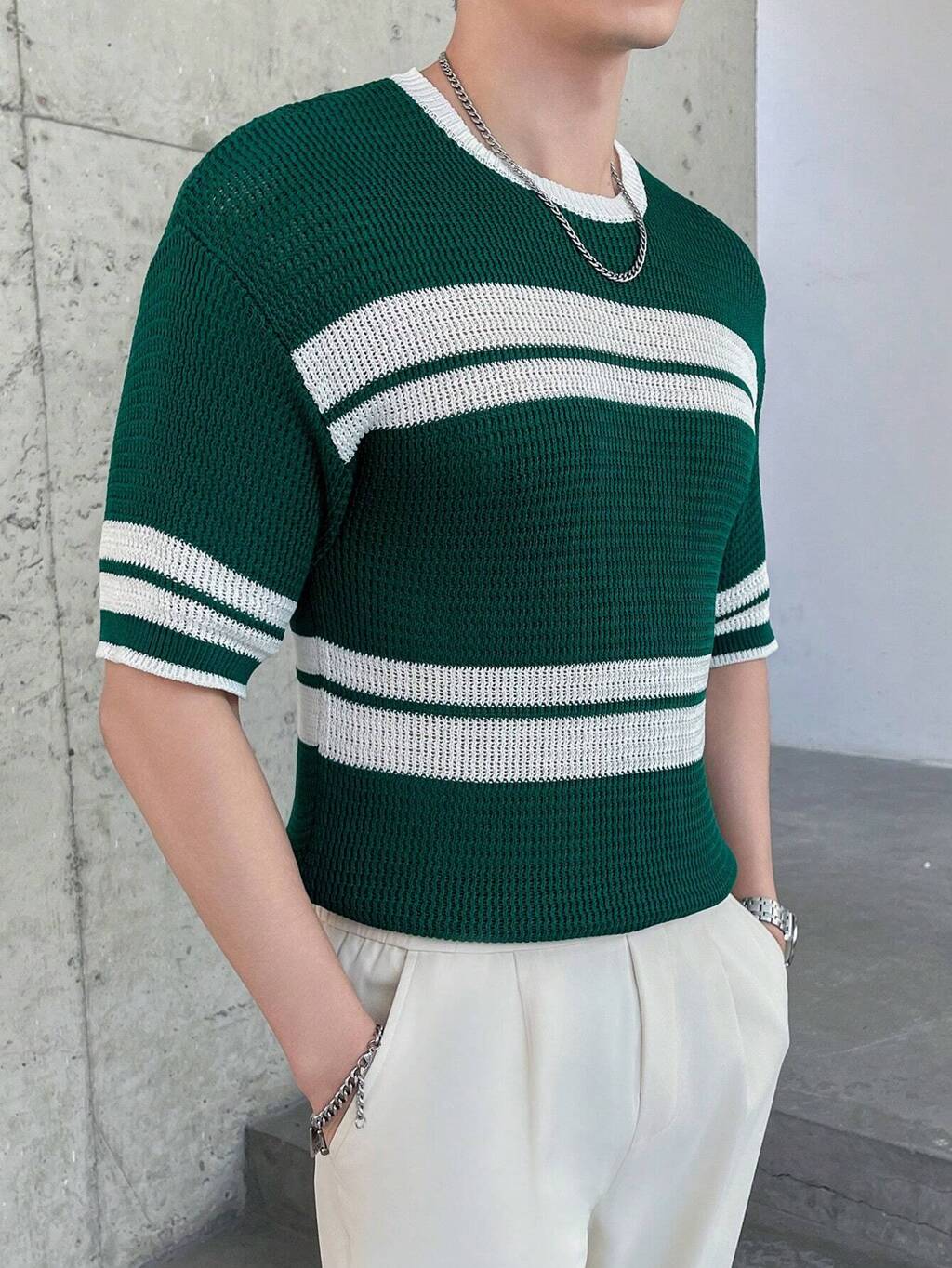 Men's Casual Short Sleeve Knitted Top With Twisted Yarn