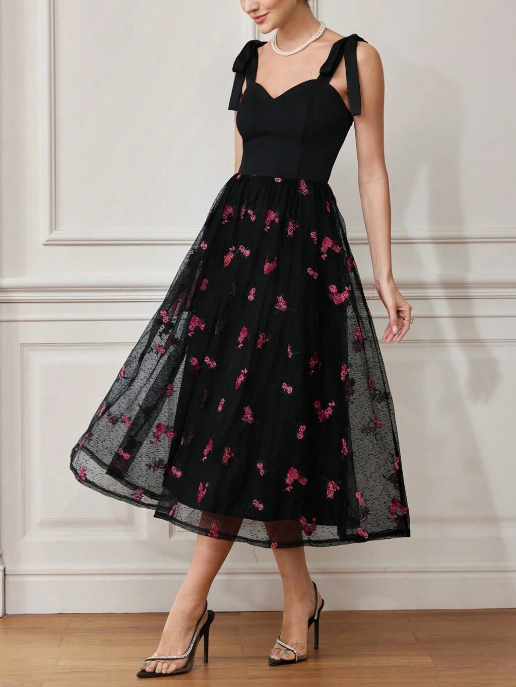Solid Color Bowknot Decorated Textured Fabric Summer Sleeveless Dress With Wide Straps