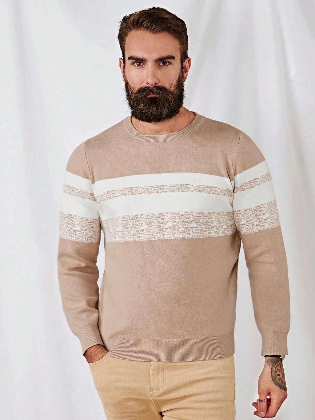Men Marled Print Colorblock Sweater