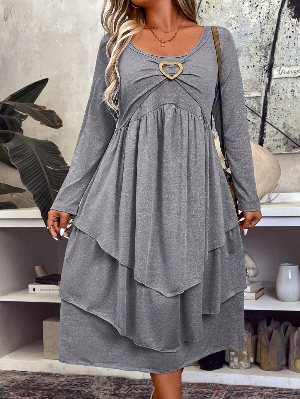 Women's Pleated Long Sleeve Dress