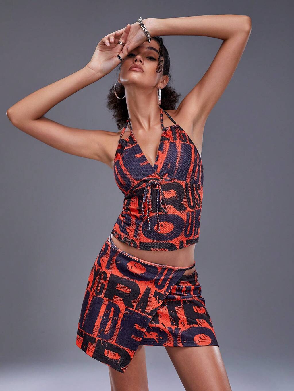 Artist Y2K Casual Printed Crop Halter Top, Slim Fit, Women, Holiday, Vacation, Spring & Summer, Beach, Going Out, Festival, Ibiza Fits, Western Wear