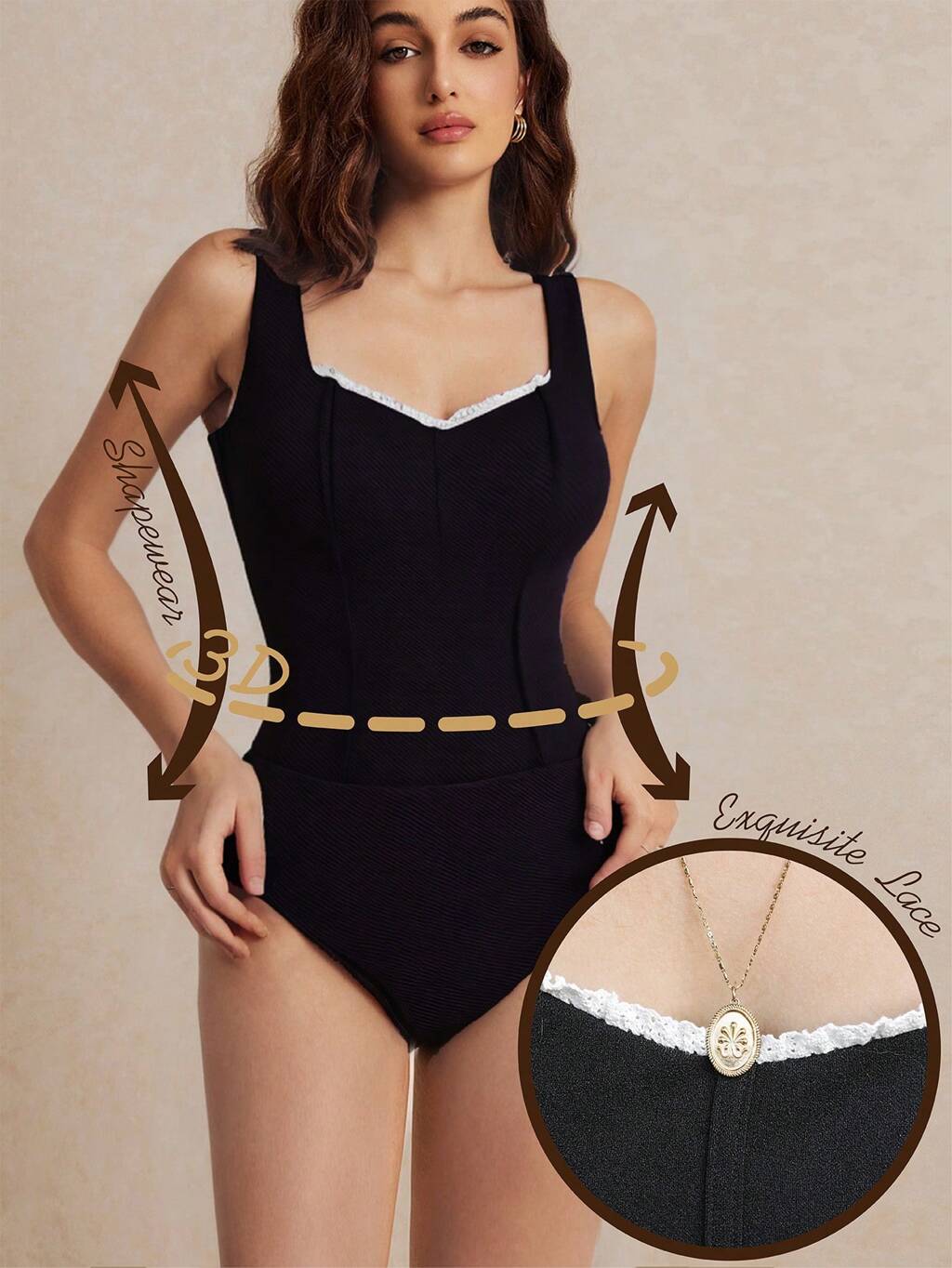 Exquisite Contrast Trim Lace, Excellent Minimalist Shap And Fashionable Sleeveless Corset Bodysuit, Summer Vacation Season, Comfy, Boho, Beach Women Outfits, Swimwear Cover Up, Mother Day Dress, Mom, Fashion, Black Skirt, Black Bow, Grad Dress, Elegant Teacher, Leisure, Simple Daily, Cottagecore, Solid Color, Holidayleisure, Modest, Bachelorette Casual
