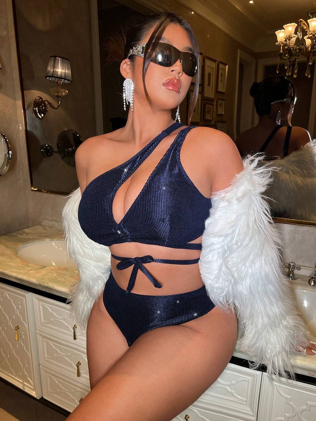 Plus Size Women's Sparkly One Shoulder Bikini Set Summer Beach