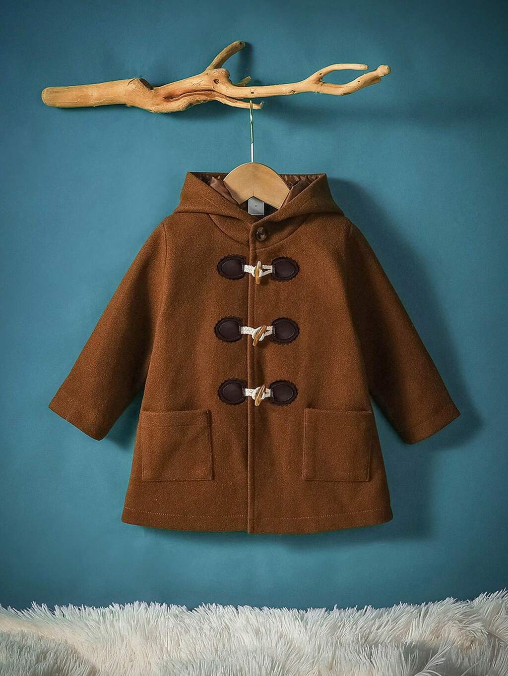 Baby Boys Pocket Duffle Button Hooded Duffle Overcoat