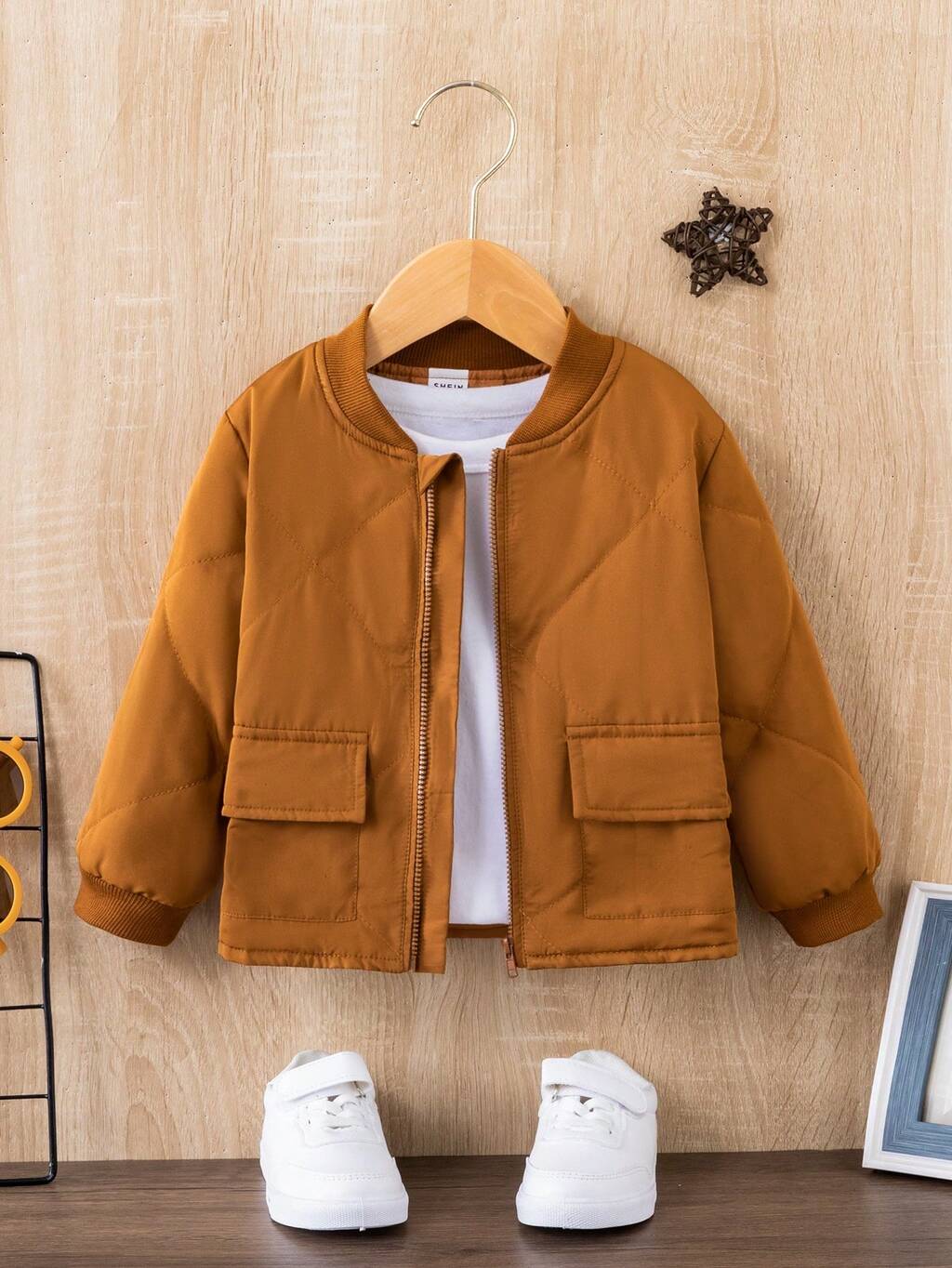 Baby Boy 1pc Flap Pocket Zipper Front Bomber Jacket