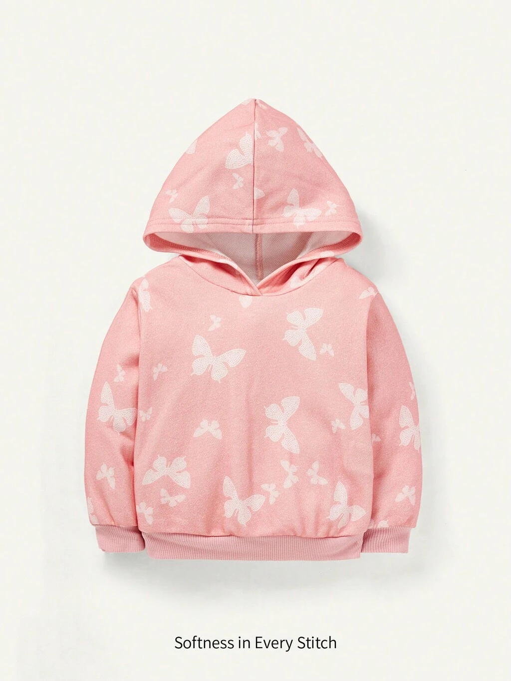 Baby Girls' Casual Pink Color-Block Long Sleeve Hoodie And Pants Set With Heart Pattern, Winter
