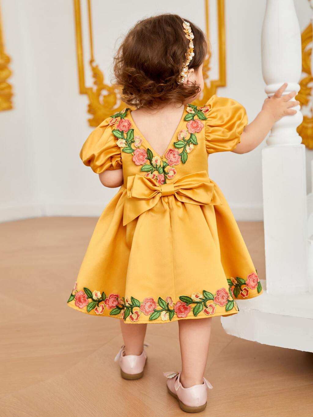 Baby Girl Floral Embroidery Appliques Puff Sleeve Dress