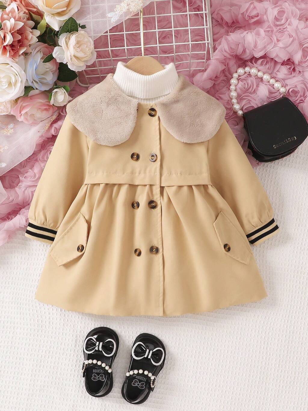 Baby Girl Double Breasted Striped Trim Peter Pan Collar Coat