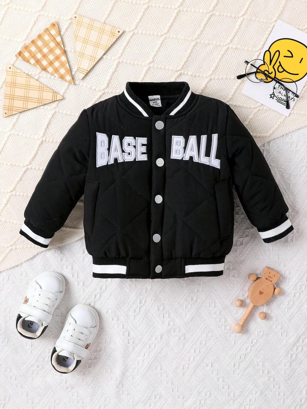 Baby Girl Letter Graphic Striped Trim Quilted Varsity Jacket Without Tee