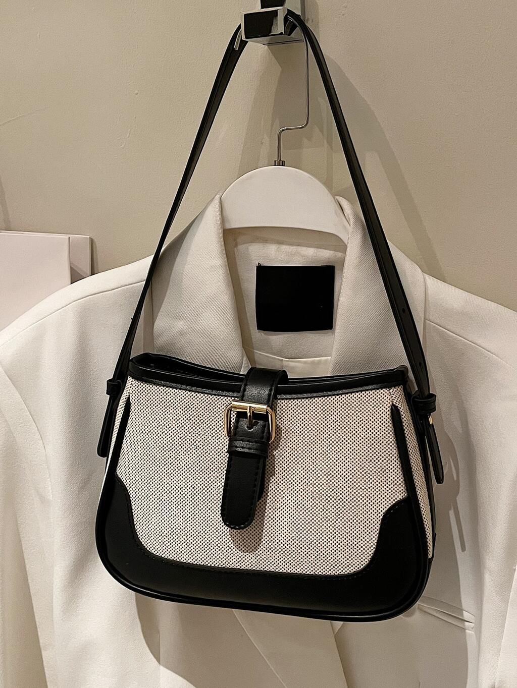 Stylish Linen & Suede Color-Block Versatile Elegant Shoulder Bag, Perfectly Matching With Fall Outfits Women