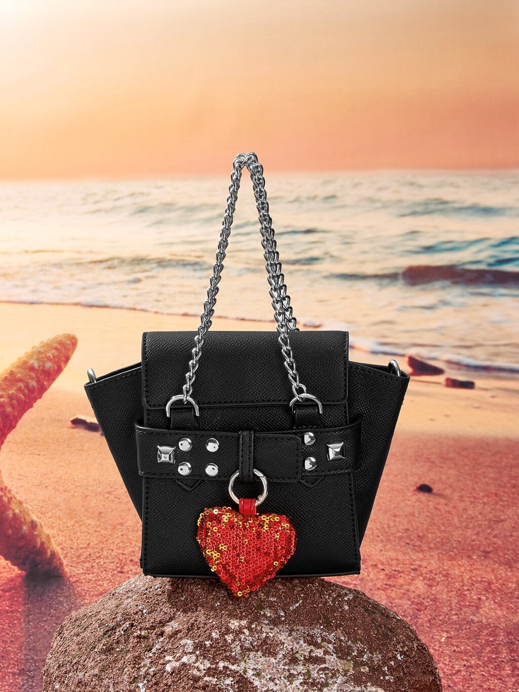 Mini Studded Decor Heart Shaped Novelty Bag . The Best Valentine's Gifts For Girlfriend Lady & Woman. Perfect For Shopping, Daily Use, Perfect Valentine's Day Gift For Her, Best Valentine's Gift Choice Ever Valentines, Heart Purse, Perfectly Match With Valentine Day Dress