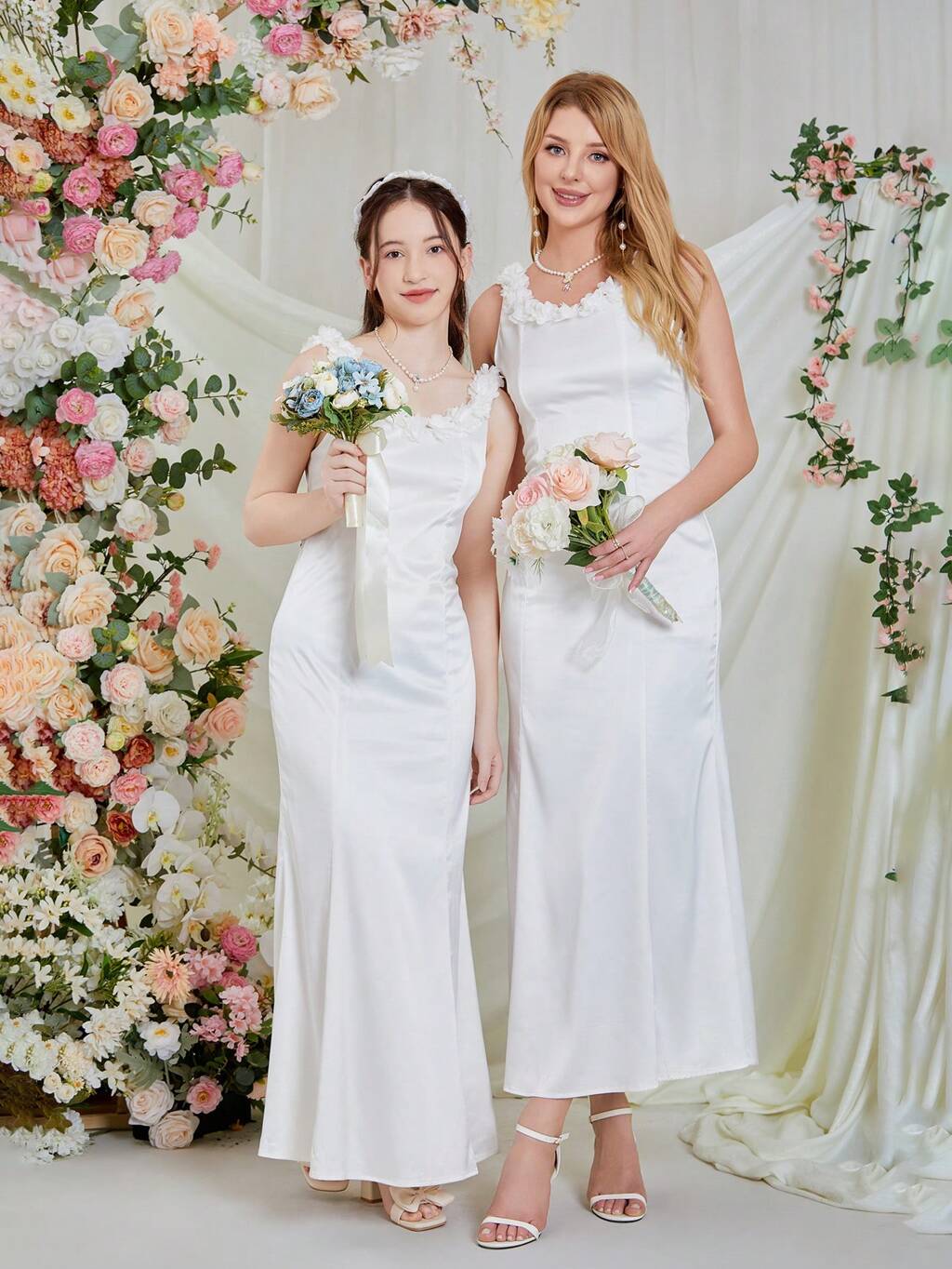 Teen Girl White Hollow Out Sleeveless Cami Dress Family Matching Outfits (2 Pieces Sold Separately)