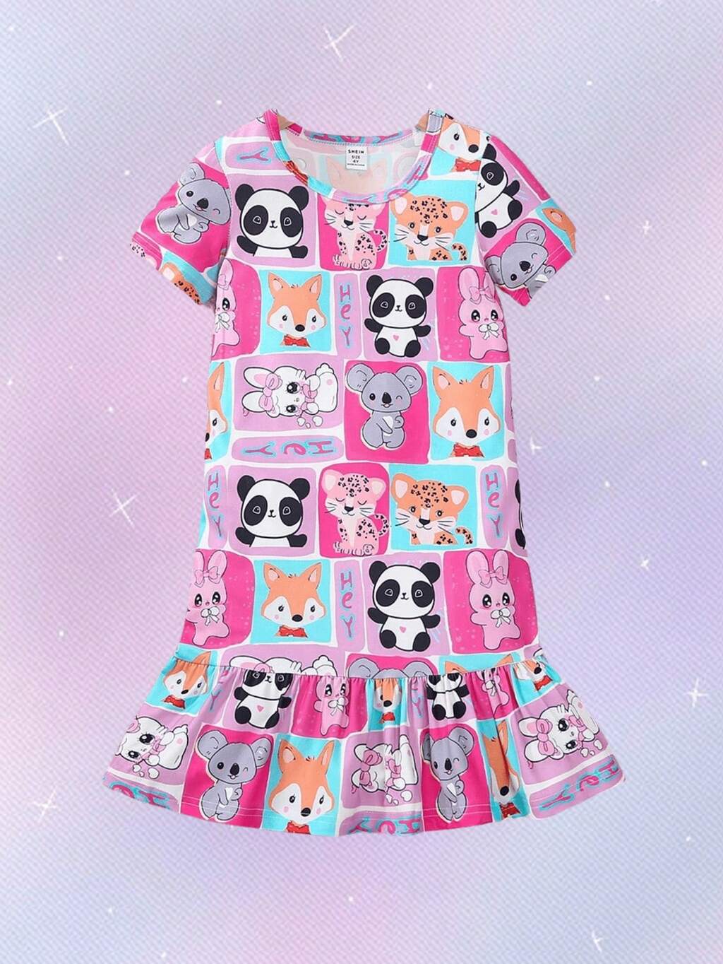 Young Girl Letter & Cartoon Graphic Ruffle Hem Smock Sleep Dress