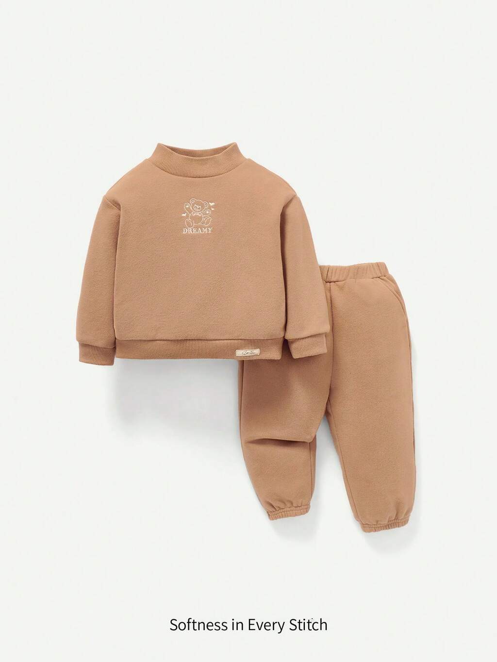Baby Girl Letter Graphic Mock Neck Thermal Lined Sweatshirt & Sweatpants