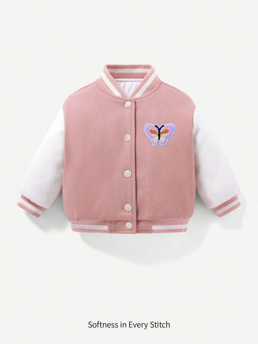 Baby Girls' Letter & Floral Print Baseball Jacket And Pants Set