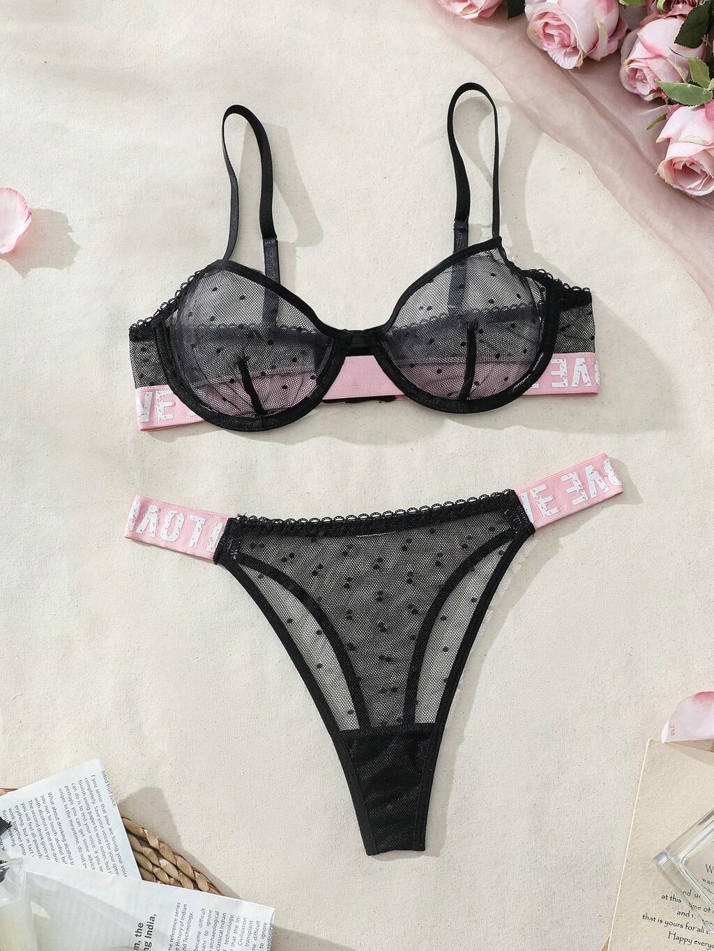 Women's Color-Block Bra With Underwire And Lace-Up Panties Set, Lingerie