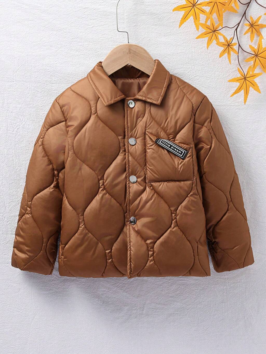 Young Boy Letter Patched Detail Quilted Coat