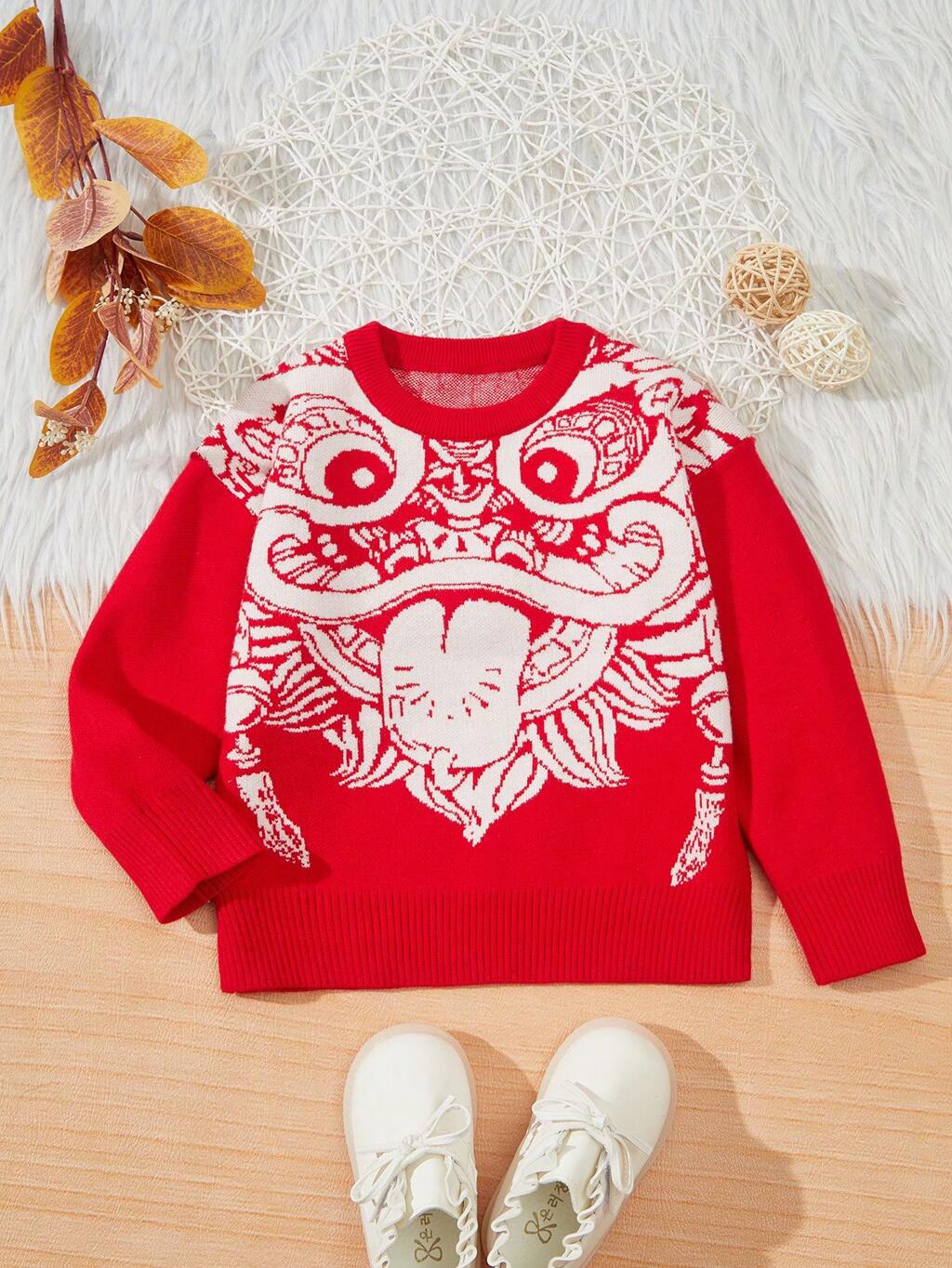 Toddler Boys' Lion Dance Pattern Long Sleeve Sweater