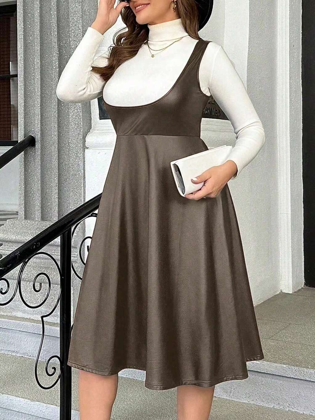 Plus Size Women's Simple Daily Solid Color Leather Dress