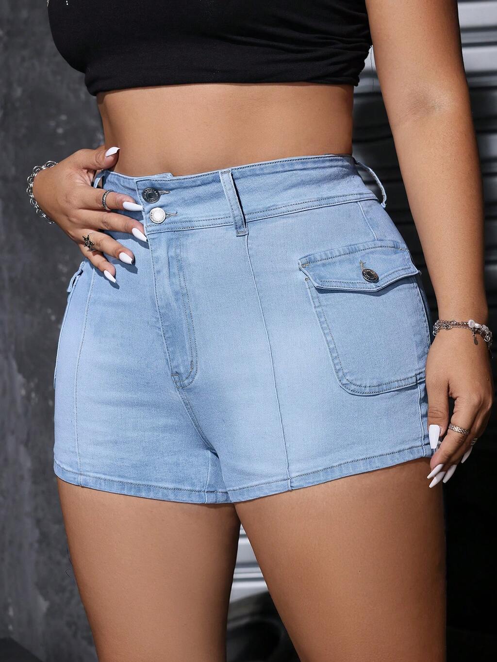 Plus Summer Flap Pocket Buckle Detail Denim Skirt