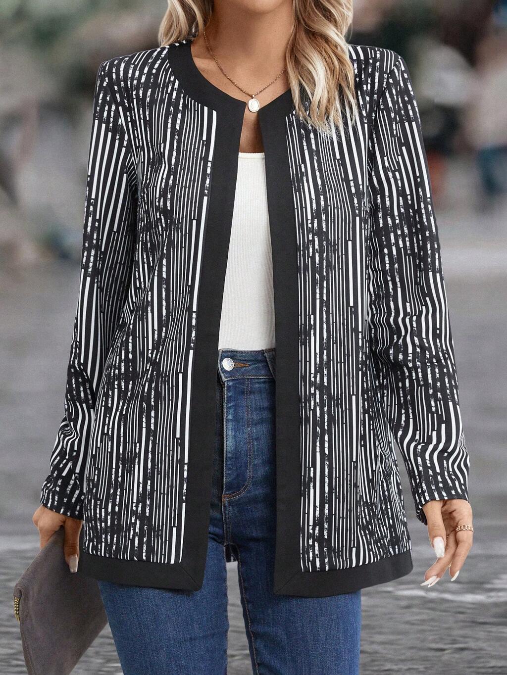 Zebra Striped Lapel Neck Slant Pocket Overcoat