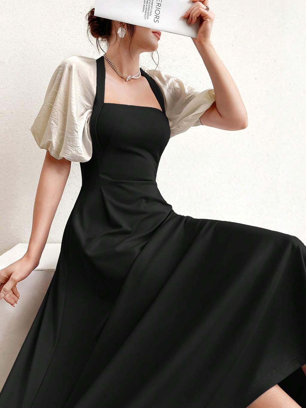 Women's Color-Blocking Square Neck Fashionable Simple Dress