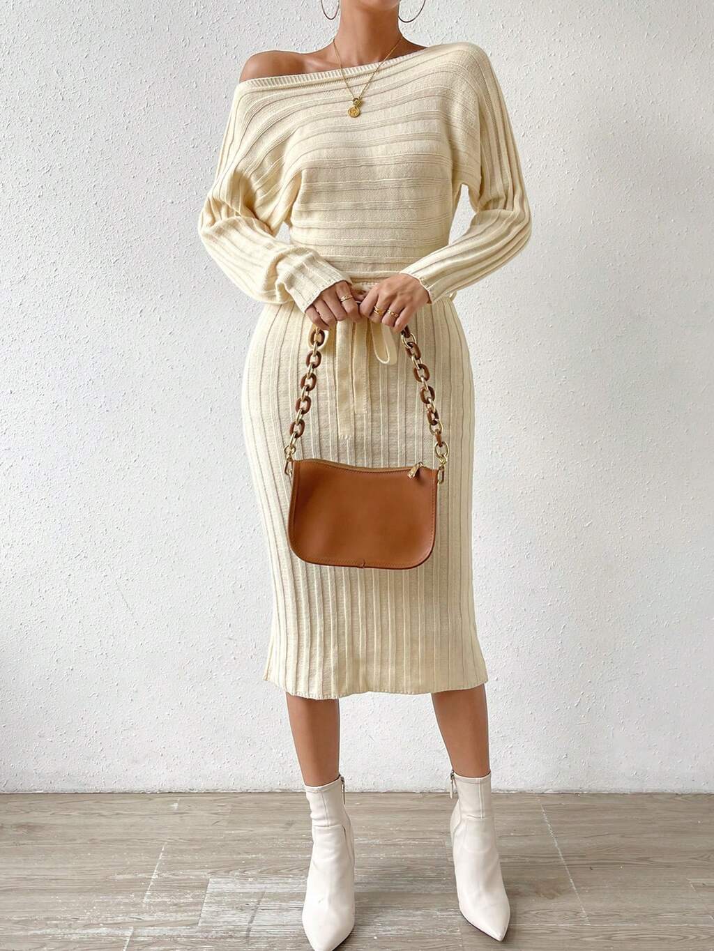 Off Shoulder Ribbed Knit Bodycon Sweater Dress