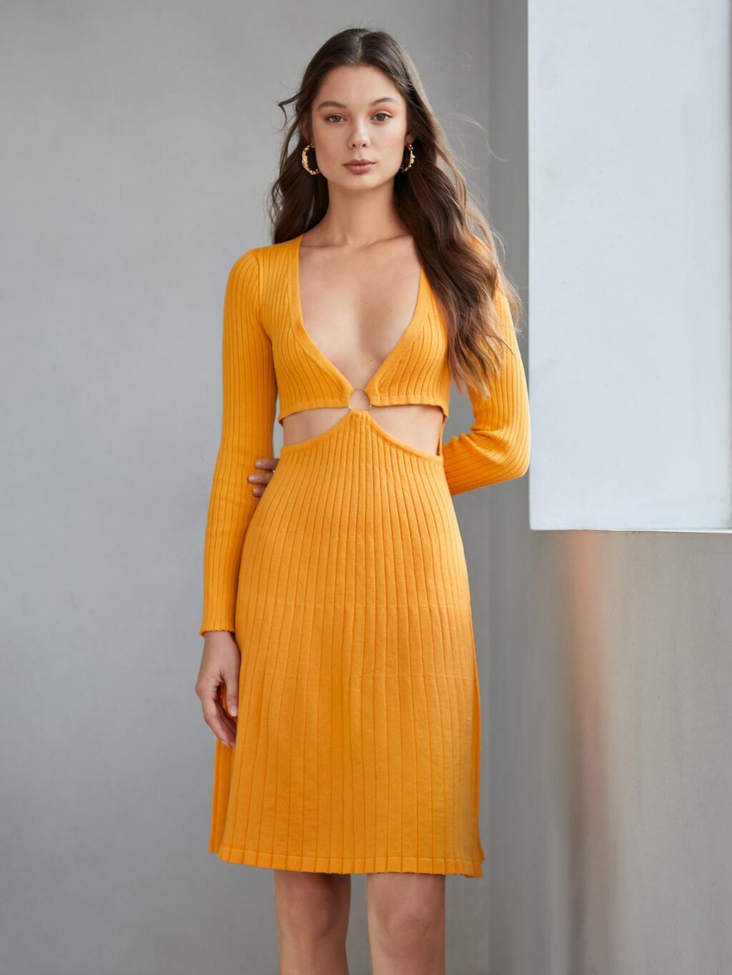 O-ring Cut Out Ribbed Knit Sweater Dress